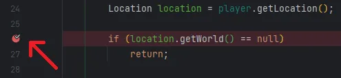 if (location.getWorld().getEnvironment() == World.Environment.NETHER) {    player.sendMessage("You are in the nether!");  }}You can add a breakpoint to the line by clicking on the line number: